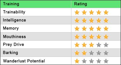 - Temperament: Affectionate, Easygoing, Curious, Dedicated, Hard Working, Intelligent, Inquisitive, Independent, Loyal, Keen, Resolute, Vigilant